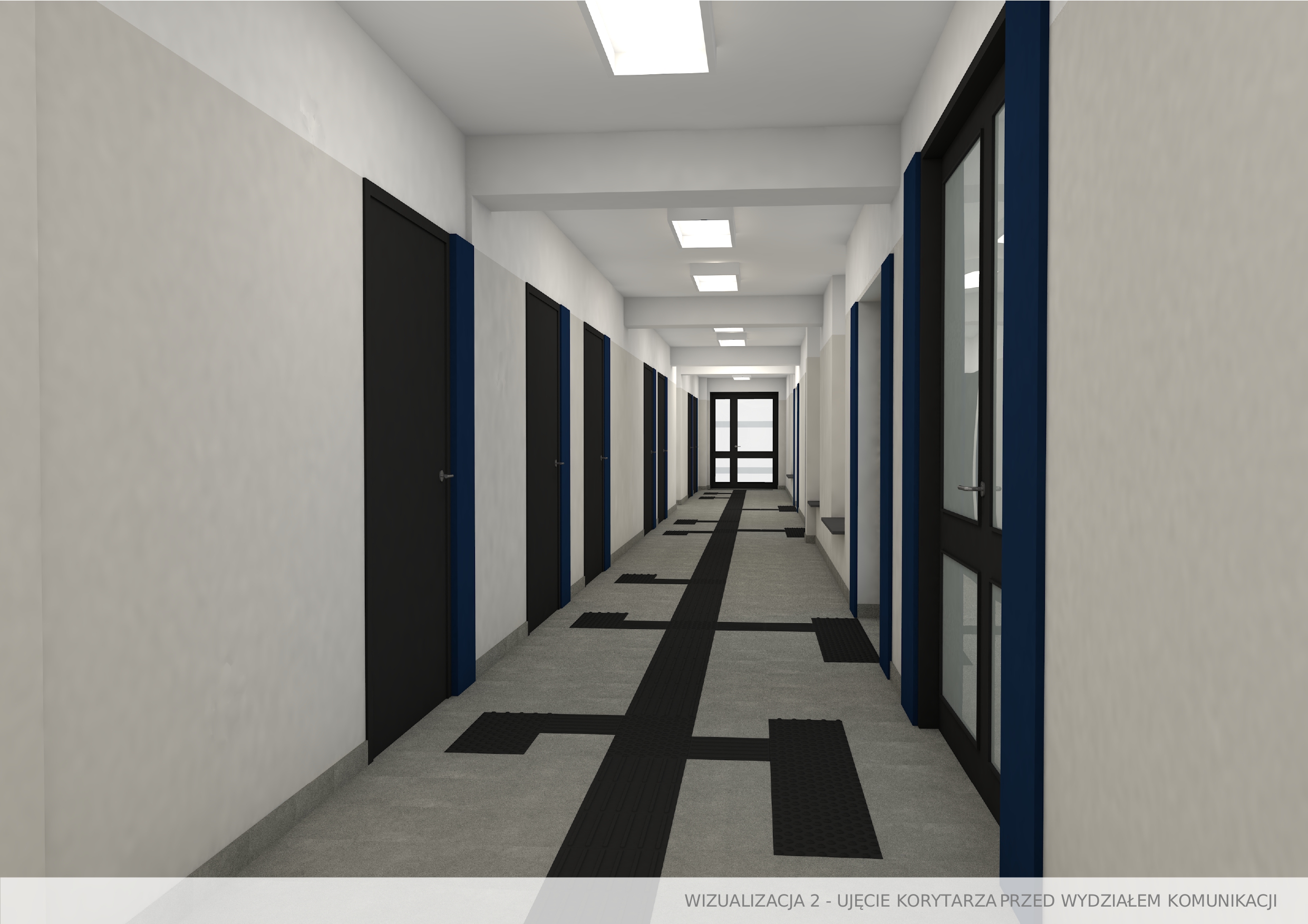 - poprawa dostępności informacyjnej – czytelne oznaczenia, płytki FON (specjalne płytki z wypukłą strukturą, które pomagają osobom niewidomym i słabowidzącym bezpiecznie poruszać się po budynku).